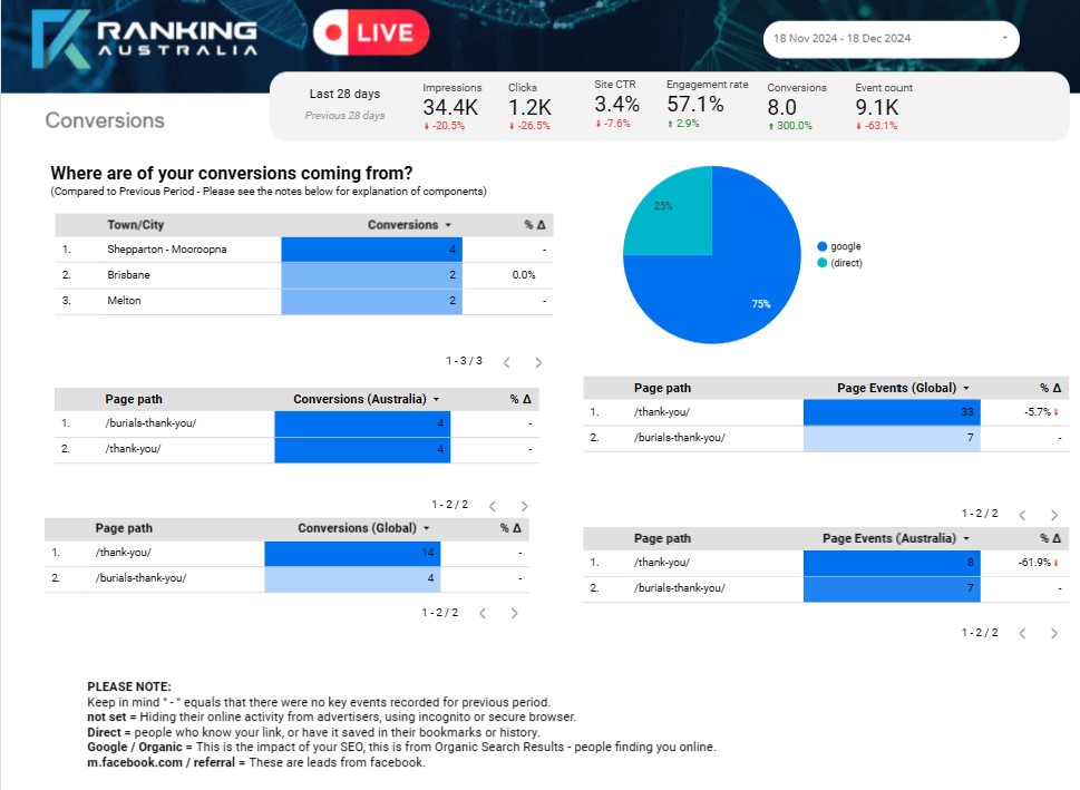 Fig 1. Insights from a Local Funeral Services, Small Business Website.