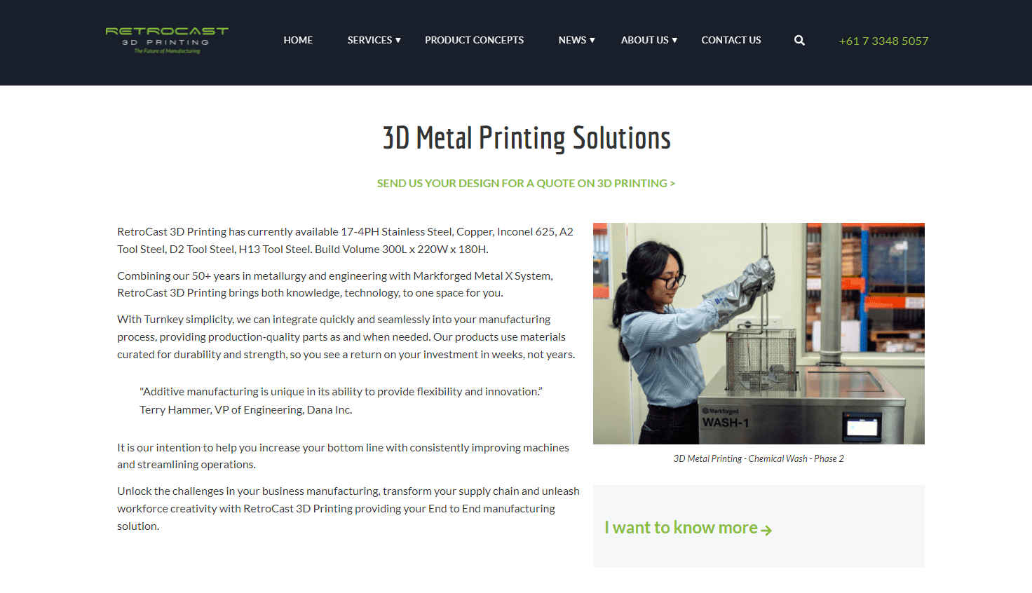 RetroCast Pty Ltd has been supporting Australian businesses with product improvement, manufacture and supply of ferrous and non-ferrous castings, forgings, fabrications and assemblies. With 50+ years of metallurgical and engineering expertise, they have introduced 3D Printing services. Using state of the art technology RetroCast, has the expertise to support their clients from 3D Modelling, 3D Scanning and all ranges of 3D Printing. With their strategic partnership with Mark Forged and SF Design, RetroCast is passionate to educate and support Australian businesses in improving the profitability and scalability in their manufacturing processes.