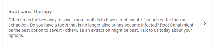 Take a look below and see an example of services without descriptions versus service with description. Each Service offering should be added in order to be searchable for relevant keywords. You can add paragraphs to increase your SEO ranking power.